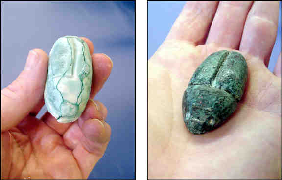 If you completed the mold of Figure 10-3(R) you have only to pack your mixed glass ingredients into the mold. If you have no mold, you must at least coat the walls of your crucible with investment, as shown in Figure 10-2(L), to prevent the glass from sticking to the walls of your crucible. Fill your mold or crucible with the mixed glass ingredients, cover your crucible with its lid, and fire it to cone 05. When it returns from the kiln, remove the lid and use a knife or screwdriver to pry the investment from the crucible. Chip away at the investment to free your glass from its cocoon, as shown in Figure 13-2. A knife can be used to remove much of the investment, but a Dremel tool with a cutting disk is useful for removing it from the surface of the glass. Provide yourself with a bowl of water and use it to wash your glass object twice a minute, or so. The water will help to soften the investment and it will keep the glass cool. Since glass is much harder than investment, it is easy to remove the investment without fear of damaging the glass. The finished glass casting is shown in Figure 13-3(R).