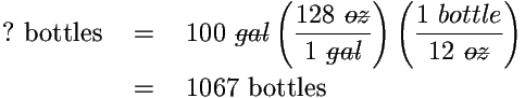 Belatedly you realize that you don't have anywhere near the right number of bottles; you implicitly and erroneously assumed that each bottle would hold a gallon when in fact they are 12-ounce bottles. Hurriedly you use your old friend, UFA from Chapter 3 to calculate the number of bottles needed: