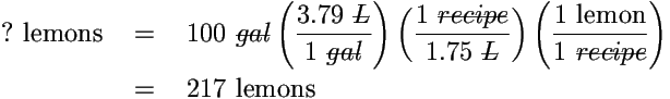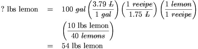 But your wholesaler sells lemons by the pound. A 10 pound bag of lemons contains an average of 40 lemons, so:
