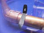 After the glue has set, remove the shield and flip it over. Pass a brush (g) through each of the brush holes as shown.