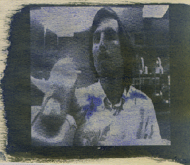 Gum arabic has been used for centuries as a component of paints. Initially soluble in water, it is oxidized over time by the oxygen in the air to an insoluble form. Bum bichromate photography simply uses dichromate as an oxidizing agent to speed up this "hardening" process. Since the dichromate ion is brightly colored, we know it absorbs light. In fact, its oxidizing power is increased by exposure to light. Let us then imagine a mixture of gum arabic and ammonium dichromate painted onto watercolor paper and left to dry in the dark. Initially, we could simply wash the paper in running water and all of the gum arabic would wash off. If left for a day or more, the dichromate will oxidize the gum arabic to its insoluble form. But if we expose the freshly dried paper to bright light, the light will increase the rate of oxidation in the exposed portions and the exposed gum will harden to its insoluble form. The unexposed gum will remain water soluble. After exposure, if we wash the paper, the exposed gum will remain on the paper while the unexposed gum will wash off. This is the principle at work in gum bichromate photography.