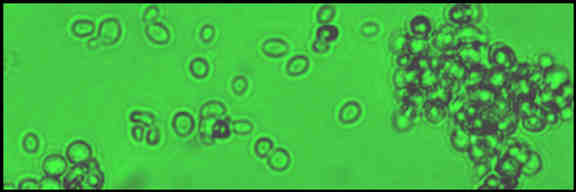 Add water, though, and it begins to spoil, that is, the little animals begin to eat the sugar. Now, most animals need air to live, and when they eat sugar, they piss out water and fart out carbon dioxide according to Equation 4-1(a). But there is a particular variety of microorganism, yeasts (Figure 4-1), which can thrive both aerobically and anaerobically, with and without oxygen. When there is plenty of air, they digest sugars aerobically as most other organisms do. But in the absence of air, they are able to partially digest sugars in aqueous solution (aq), farting out carbon dioxide, as usual, but pissing out ethanol (ethyl alcohol), rather than water, according to Equation 4-1(b). And so, if you dilute honey with water, and if yeasts are present (and they usually are), and if you protect this honey water from air, you will find yourself with a kind of wine called mead, which has nothing whatsoever to do with grapes and everything to do with the raucousness of Samson's wedding party.